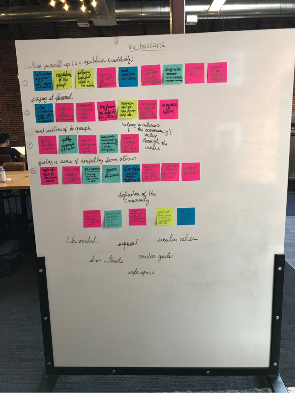 We synthesized our research findings based on Needs, Pain Points, and Motivations. Then we categorized these findings into similar topics to narrow them down more.